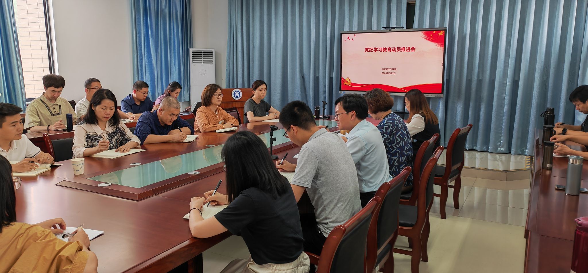 5月7日下午,437ccm·必赢国际召开党纪学习教育动员推进会,党委班子成员、支部书记、教研室主任及437ccm·必赢国际全体党员参加。会议由437ccm·必赢国际党委书记林萍主持。