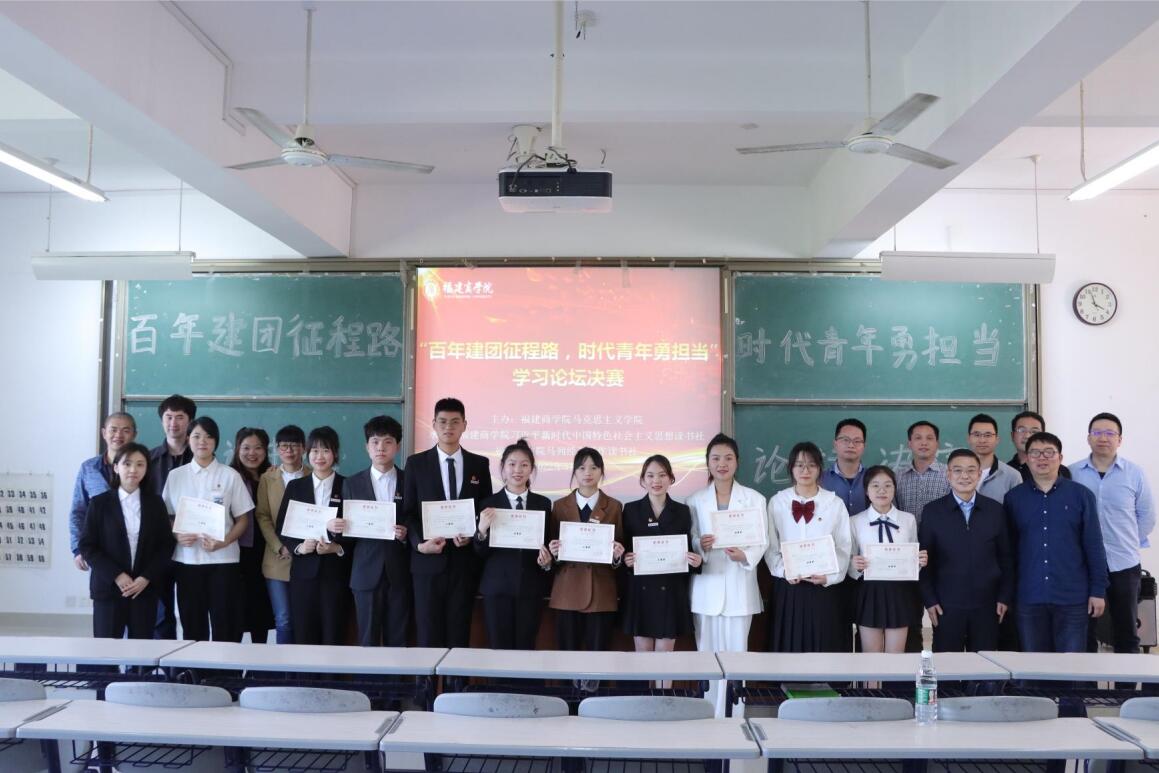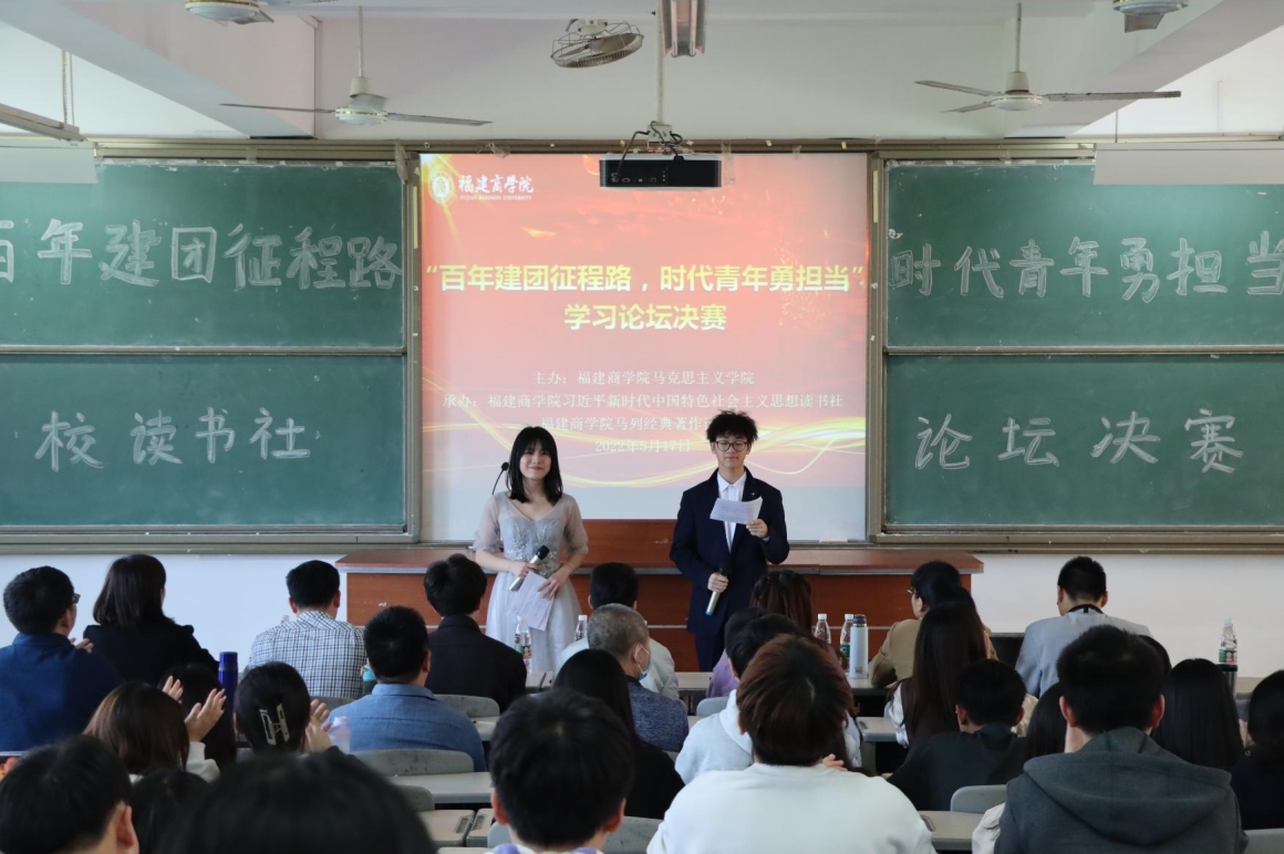 2022年5月17日下午,校习近平新时代中国特色社会主义思想读书社和校马列经典著作读书社在连江校区诚信楼中阶三举办主题为“百年建团征程路,时代青年勇担当”的学习论坛决赛。校党委副书记吴访益、437ccm·必赢国际部分教师及二级437ccm·必赢国际读书社相关指导老师、校读书社成员近200人参加了本次活动。