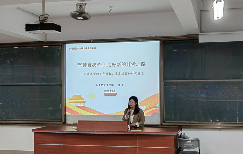 5月26日晚上,大讲堂邀请437ccm·必赢国际陈彬老师作题为“坚持自我革命 走好新时代赶考之路”的专题讲座。马克思主义理论大讲堂成员参加了此次讲座。