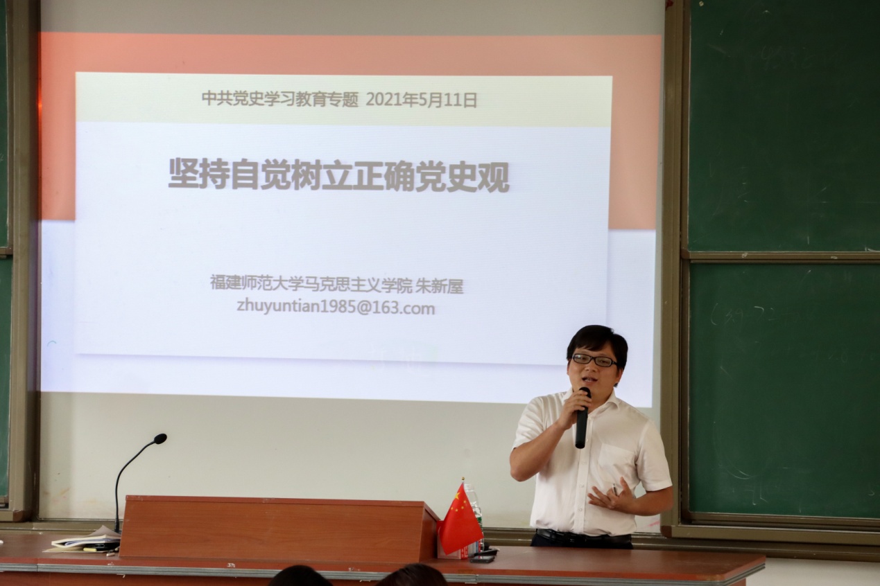 5月11日下午,马克思主义理论大讲堂邀请党史学习教育省委宣讲团成员朱新屋老师到我校作题为“坚持自觉树立正确党史观”的专题讲座。437ccm·必赢国际全体教师、大讲堂成员,统战部、规划处、国资处支部党员到场听取报告。