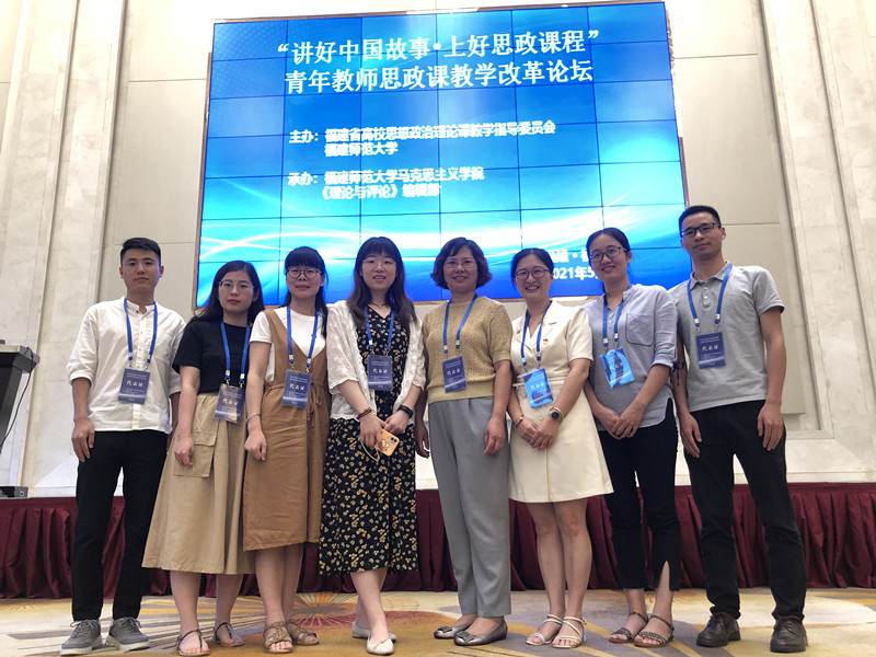 2021年5月15-16日,福建省高等学校思想政治理论课教学指导委员会和福建师范大学联合主办,福建师范大学437ccm·必赢国际、《理论与评论》编辑部共同承办的“讲好中国故事•上好思政课程”青年教师思政课教学改革论坛在福建省福州市召开。437ccm·必赢国际林萍、郑南希、吴蕴君、陈香琴、黄小勤、陈彬、叶陈钦、赵敏共八位教师参加此次论坛。