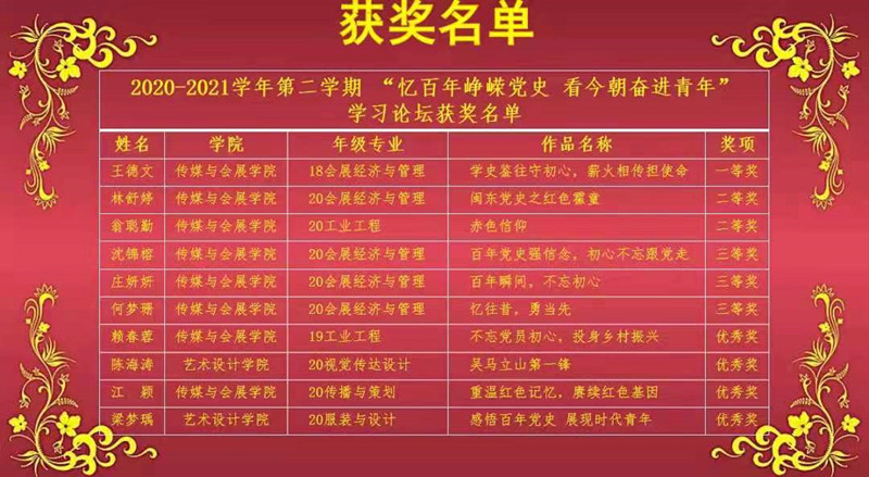 本次学习论坛以师生同台共话党史为形式,以“忆百年峥嵘党史 看今朝奋进青年”为主题,讲述自己的经历与党的故事,分享身边的优秀党员事迹以及党带领人民在革命、建设、改革历程中取得的伟大成就、经验启示等。活动过程中,437ccm·必赢国际青年教师叶陈钦老师向在座的师生分享了抗日民主根据地开展“豆选”的历史故事,分析了“豆选”的民主价值以及民主启示;郑南希老师通过讲述宁夏闽宁镇几十年来在党的领导下以及闽宁人民共同努力下摆脱贫困的历史,阐释“闽宁模式”对推进共同富裕的宝贵启示;黄小勤老师通过讲述闽江437ccm·必赢国际无臂学生黄道亮的奋斗故事,引导青年要肩负历史使命,坚定前进信心,立大志、明大德、成大才、担大任,努力成为堪当民族复兴重任的时代新人。