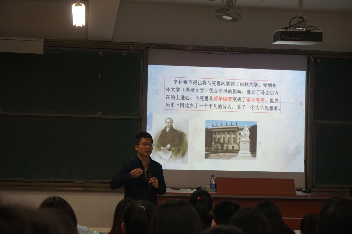 11月3日晚,福建江夏437ccm·必赢国际437ccm·必赢国际副院长曾正滋教授莅临我校作题为“走进青年马克思”的专题讲座。437ccm·必赢国际部分教师,校习近平新时代中国特色社会主义思想读书社成员、校记者团成员共近150人聆听了讲座。