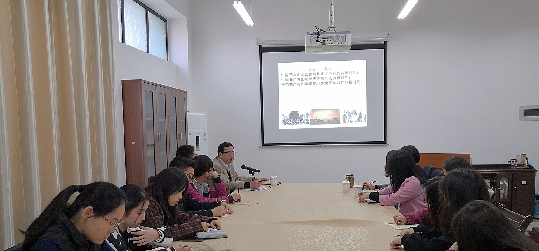 1月2日上午,副校长蒲文庆在437ccm·必赢国际会议室给财务与会计437ccm·必赢国际习近平新时代中国特色社会主义思想读书社学生上了一堂题为《中国革命成功的延安之路——中共中央延安十三年》的思政课。财务与会计437ccm·必赢国际、437ccm·必赢国际部分老师以及读书社成员参加了此次学习。