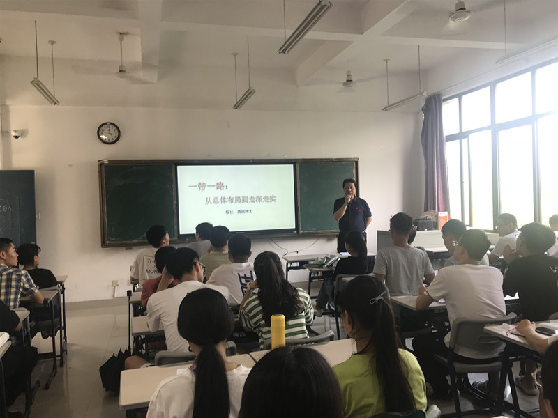 6月25日下午,黄斌校长在连江校区诚信楼,为18通信工程学生讲授了一堂《一带一路:从总体布局到走深走实》思想政治理论课。