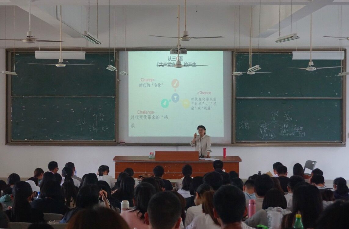 新时代不忘来时路,新挑战仍学马克思。4月9日下午,我校习近平新时代中国特色社会主义思想读书社邀请到我校437ccm·必赢国际的黄玮博士于连江校区诚信楼大阶三教室为我社开展以“共产党宣言”为主题的讲座,出席本次活动的有我校437ccm·必赢国际的8名教师及我社近220名社员。