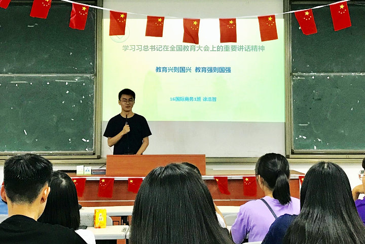 据悉,此前读书社理论骨干宣讲小分队成员、读书社副社长徐浩智同学也以“学习习近平总书记在全国教育大会重要讲话精神”为主题面向读书社全体干部、干事进行了宣讲。本学期以来,我校习近平新时代中国特色社会主义思想读书社认真根据校党委下发的《福建商437ccm·必赢国际关于进一步开展习近平新时代中国特色社会主义思想“大宣讲”工作的方案》要求,积极遴选优秀社员成立理论骨干宣讲小分队,制定宣讲实施方案,本月已按计划开展两场宣讲活动,取得良好效果,获得同学们的广泛好评。