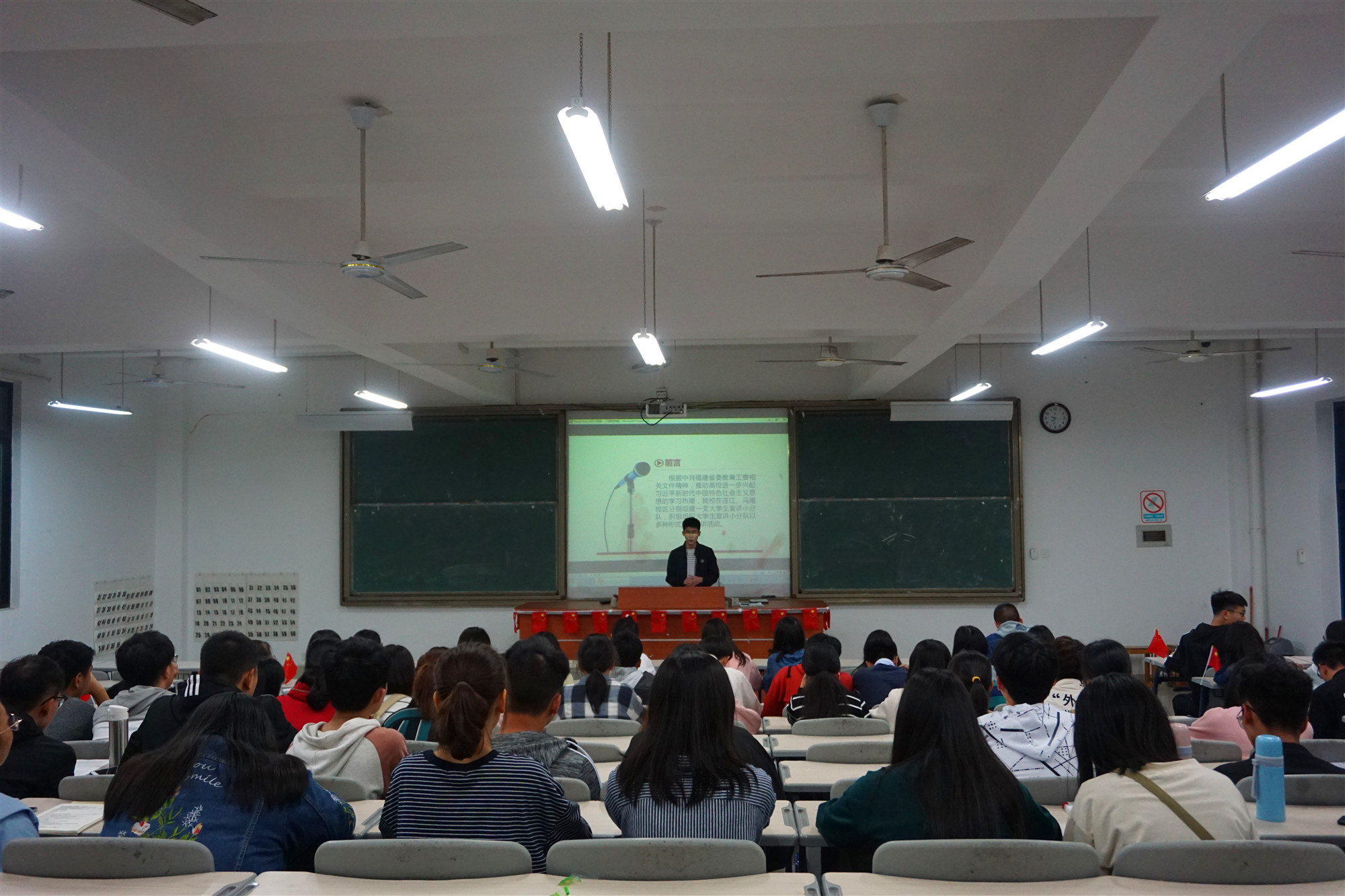 桂花飘香,秋雨微凉。10月21日晚,福建商437ccm·必赢国际习近平新时代中国特色社会主义思想读书社学生宣讲小分队成员林威同学于连江校区诚信楼中阶一开展了以“坚定马克思主义信仰,不辱时代使命,不负人民期望”为主题的宣讲活动。参加此次活动的为读书社一班第三、四、五组的社员们近80名同学。