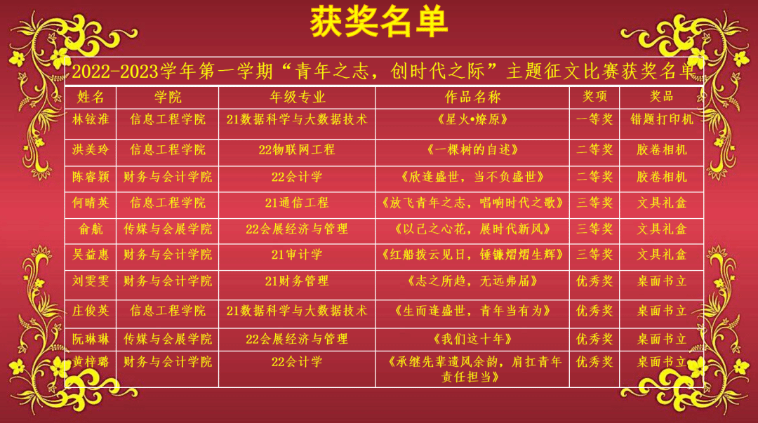 青年如朝日,青年兴则国兴。自11月活动开展以来,读书社全体社员热情投入、踊跃参加,经437ccm·必赢国际组织开展初选、复选,推出10篇优秀征文,经过评审,最终评出一等奖1名,二等奖2名,三等奖3名,优秀奖4名。