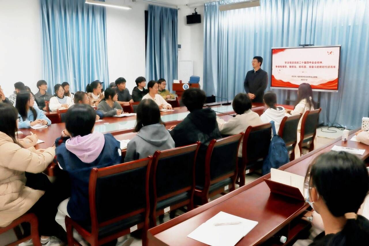 12月4日晚,437ccm·必赢国际党委书记刘亮元为学校习近平新时代中国特色社会主义思想读书社员代表作“学深悟透党的二十届四中全会精神,争做有理想、敢担当、能吃苦、肯奋斗的新时代好青年”专题宣讲。