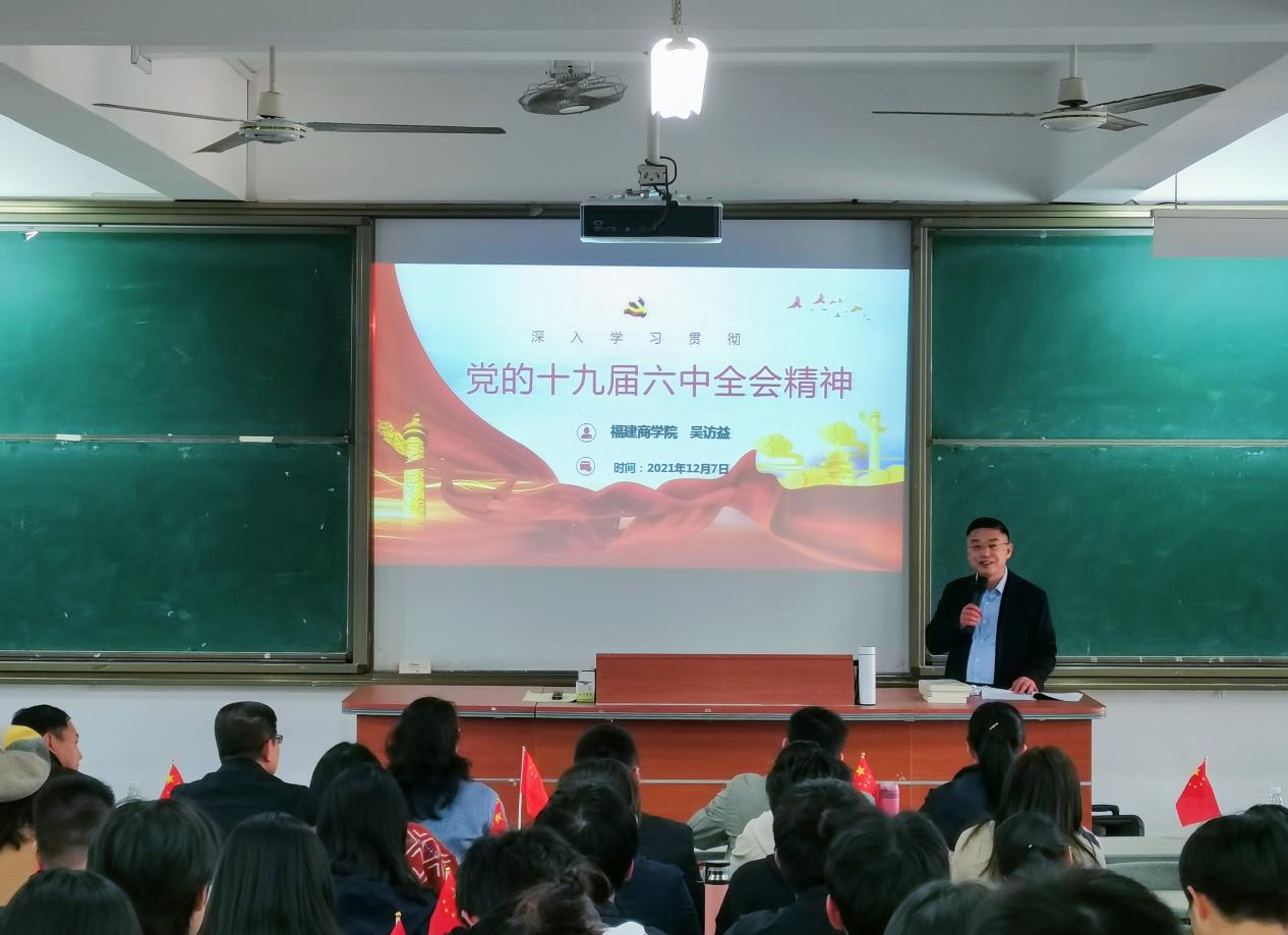 12月7日下午,校党委副书记吴访益在连江校区诚信楼中阶4教室作题为“深入学习贯彻党的十九届六中全会精神暨学习福建省第十一次党代会精神”的主题宣讲,有关处室负责人、437ccm·必赢国际全体教职工、校习近平新时代中国特色社会主义思想读书社全体成员共120多人参加了宣讲会。