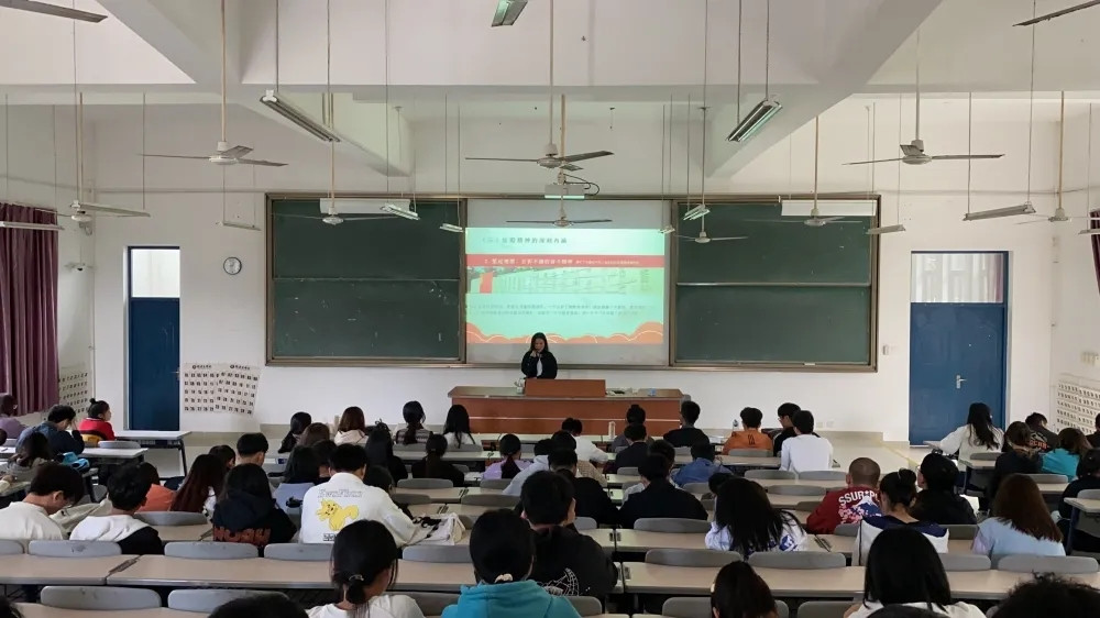 为进一步学习贯彻习近平新时代中国特色社会主义思想,特别是深入学习习近平总书记在庆祝中国共产党成立100周年大会上的重要讲话精神,了解中国共产党一百多年来领导人民不断奋进的光辉历程和取得的伟大成就,宣传中国共产党在奋斗中构建的中国共产党人的精神谱系,传承中国共产党人在中华民族伟大复兴征程中体现出的爱国情怀、高尚品格和精神风骨,汲取奋进力量。校习近平新时代中国特色社会主义思想读书社到学生社团、班级等学生群体中开展主题为“弘扬革命精神 传承红色基因”宣讲活动。