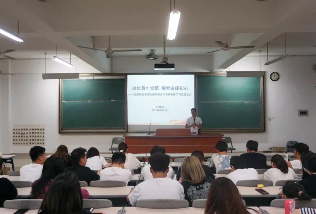 为认真学习贯彻落实习近平总书记在党史学习教育动员大会上的重要讲话精神,推动学校师生深入学好党史、新中国史、改革开放史、社会主义发展史,献礼建党一百周年,普及社会科学知识。5月25日晚437ccm·必赢国际叶陈钦老师在学校科技活动周开展主题为“追忆百年觉悟 探索选择初心——五四前后中国先进知识分子怎样选择了马克思主义”讲座,校读书社近100名社员参加学习。